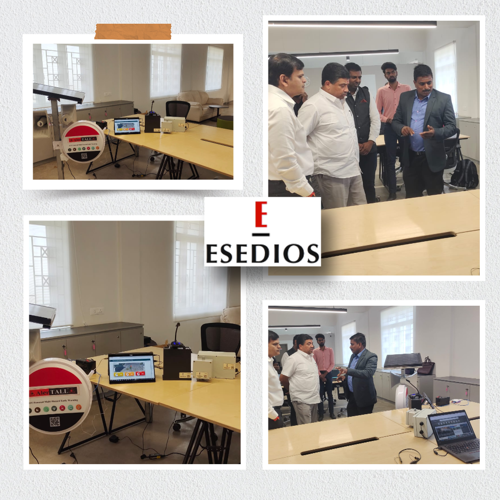 Tamil Nadu IT minister Palanivel Thiagarajan visited Esedios on 1st September 2023 to explore the available opportunities in Multi hazard early warning system and AIoT products and platform services. A Real-time live demonstration of Multi hazard Early warning system using AlerTALL and AIOTEye platforms was shown.