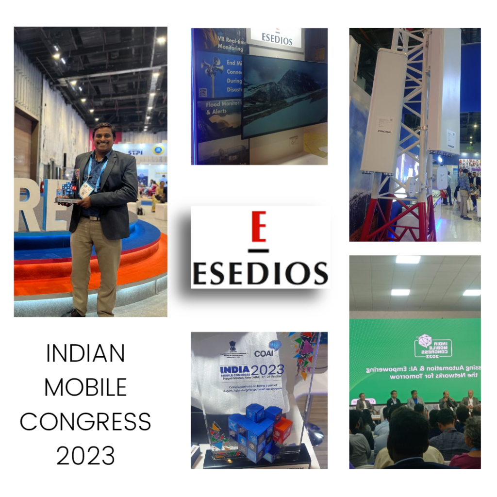 Esedios was awarded at Indian Mobile Congress 2023 on 29th October 2023. We explored the available opportunities in 5G/6G based Emergency Communication System and early warning system with our AIoT and VR products. A Real-time live demonstration of Multi hazard Early warning system using AlerTALL and AIOTEye platforms was shown. We are thankful to the continuous support by CWC, CWPRS, TNWRD and Ministry of Jal Shakti.